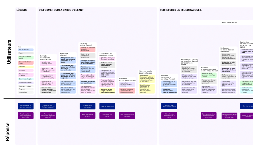Our approach combined in-depth qualitative and quantitative research, gathering insights from over 200 parents to deeply understand expectations, pain points, and usage contexts. We mapped mental models to align design choices with user thinking, organized co-creation workshops with internal teams and field professionals, and conducted sector-specific user testing to validate solutions in real conditions.